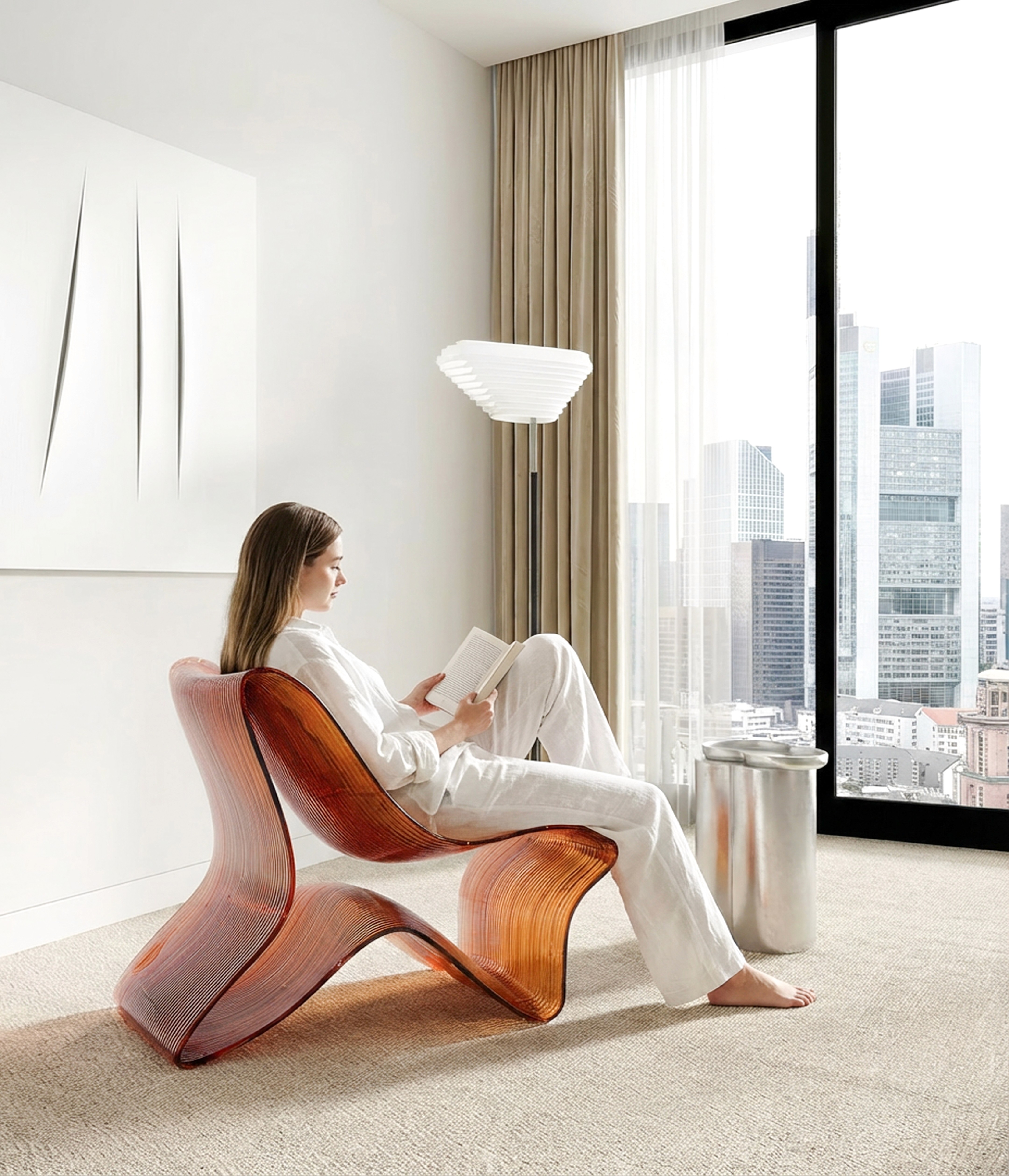 Each chair features an embedded NFC chip linked to a secure NFT, ensuring anti-clone and tamper-proof provenance.